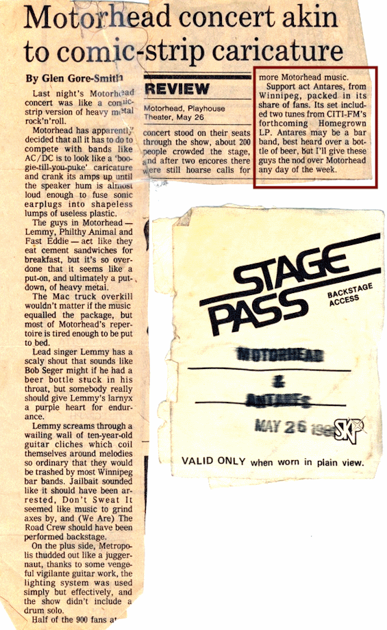 When age 16 rolled around all of a sudden playing guitar became cool so Scott picked up an Electric guitar and started learning by playing with records. By 19 Scott joined two other musicians Steve Farrell on bass and Dave Pastuck on drums to form a Winnipeg band called Antares. Antares played the local bar scene in Winnipeg from 1980 to 1985.